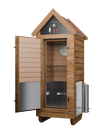 Model ten posiada dwie poziome półki, sześć poprzecznych prętów do zawieszania oraz 15 haków na produkty, co pozwala jednocześnie umieścić 10–15 kg wsadu do wędzenia.